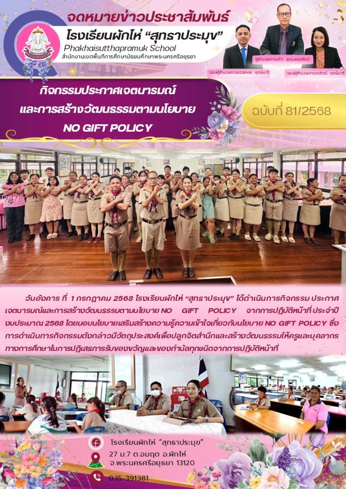 ประกาศเจตนารมณ์และการสร้างวัฒนธรรม ตามนโยบาย No Gift Policy จากการปฏิบัติหน้าที่