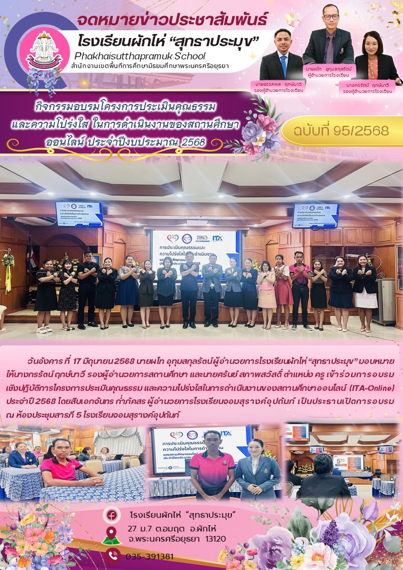 O18 : มาตรการส่งเสริมคุณธรรมและความโปร่งใสภายในสถานศึกษา