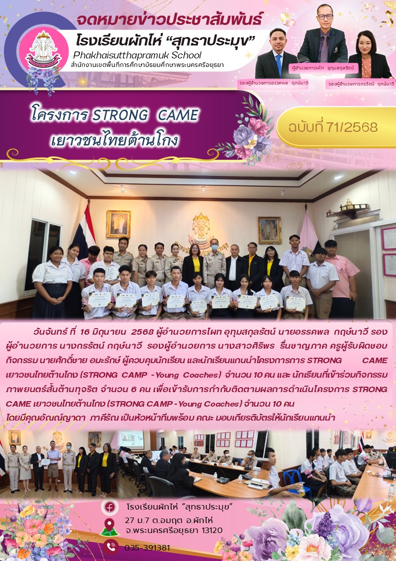 O18 : มาตรการส่งเสริมคุณธรรมและความโปร่งใสภายในสถานศึกษา