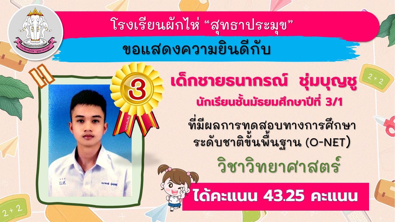 มีผลการทดสอบคะแนน O-NET ปีการศึกษา 2564 ชั้นม.3 เป็นอับ 3 ของโรงเรียนผักไห่ "สุทธาประมุข" รายวิชา วิทยาศาสตร์